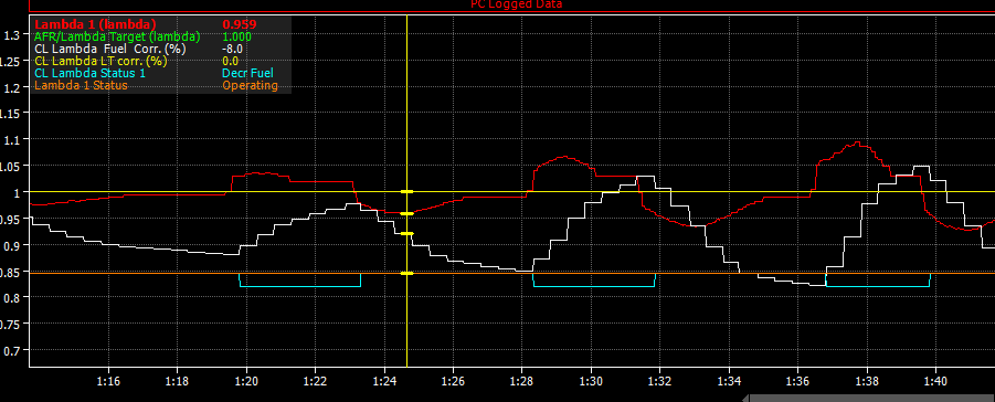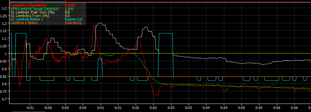 Lambda sticks at fixed value for up to 3 s and of course CL control overshoots and when lambda “unsticks” all hell breaks loose.